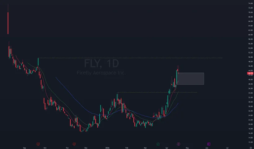 最近高 beta 股票里冒出了不少漂亮的走势股票。FLY(一家航空航天公司)看起来有所动静,很有机会重新冲回 50 美元。我个人打算再多观察一天,如果你正在找这种高弹性的波段机会,可以把它加进你的自选名单。