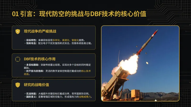 提升“爱国者” 防空导弹导引头 DBF 技术在多目标跟踪和抗饱和攻击方面的能力,对于增强防空系统的整体性能具有重要意义。这不仅可以提高对各类来袭目标的拦截成功率,有效保护国家的重要基础设施、军事基地和城市等关键目标,还能够在战略层面上增强国家的防御威慑力,为维护国家安全和稳定提供坚实的技术支撑。