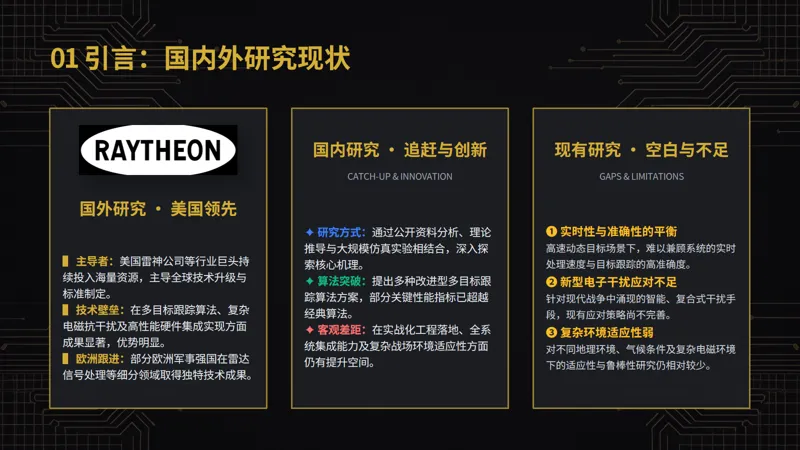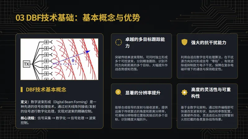 现有研究虽然在 DBF 技术的各个方面都取得了一定进展,但仍存在一些不足与空白。例如,在多目标跟踪算法中,对于目标的实时性和准确性之间的平衡问题,尚未得到完全解决;在抗饱和攻击研究中,对于新型干扰手段和复杂攻击模式的应对策略还不够完善;此外,对于 DBF 技术在不同作战环境下的适应性研究也相对较少,难以满足多样化的实战需求。