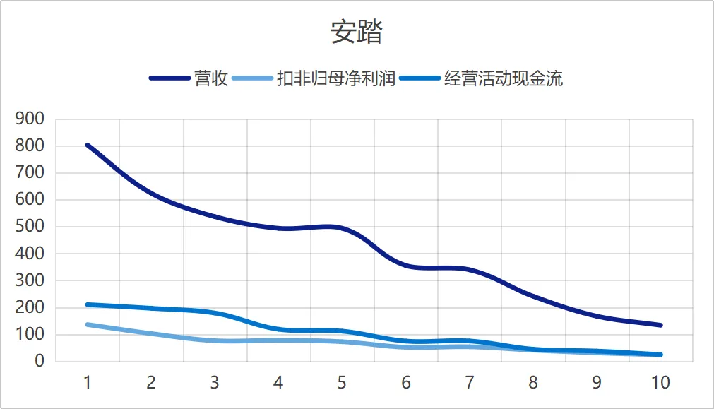 ①安踏是唯一一个营收,扣非、现金流几乎不下降的公司