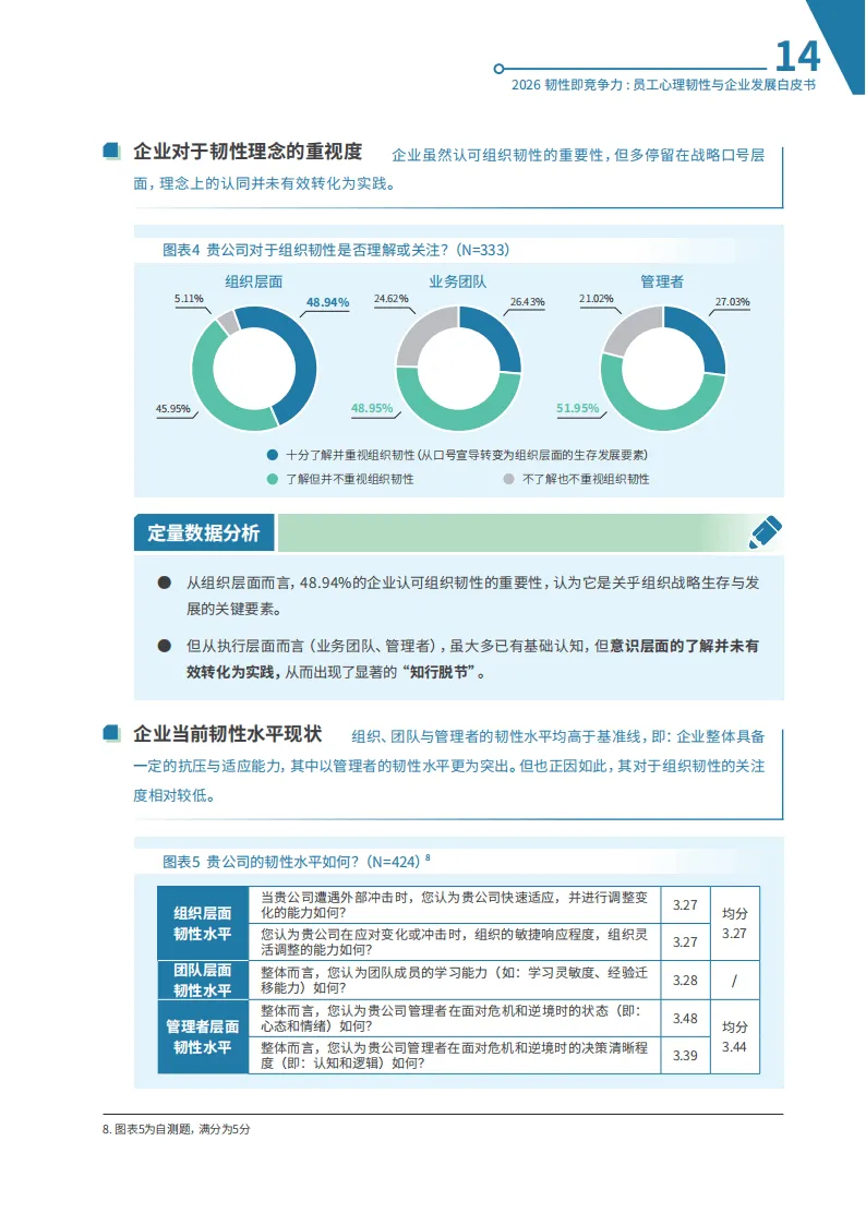 《2026韧性即竞争力:员工心理韧性与企业发展白皮书》指出,在不确定性加剧的市场环境中,心理韧性已成为企业核心竞争力,但多数企业存在理念认知模糊、实践落地不足的问题。