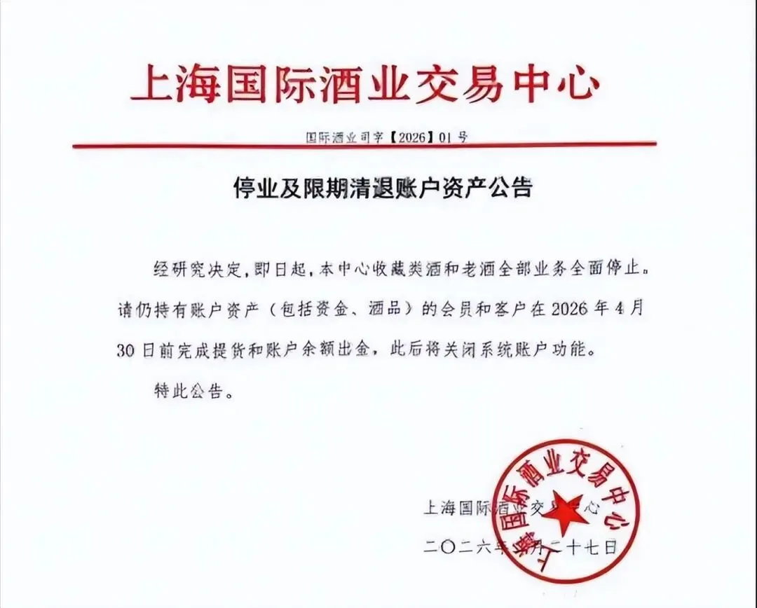 3 月以来,上海国际酒业交易中心宣布停止老酒业务、4 月 30 日前全面清户,标志老酒 “电子化交易、金融化炒作” 模式正式终结。