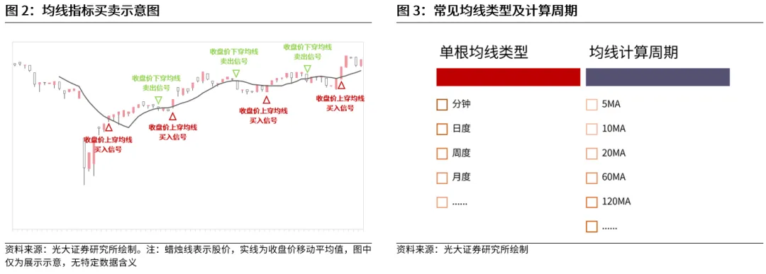 其投资逻辑直观简洁,当收盘价上穿均线时即买入,下穿均线时即卖出。均线在实际投资中,操作逻辑十分直观简洁,且能够形成完整的投资“买”、“卖”闭环。当收盘价从均线下方上穿均线时,意味着发生了向上突破,即发出看涨信号;反之,当收盘价从均线上方下穿均线时,意味着股价表现弱势,发生了向下突破,即发出了看空信号。