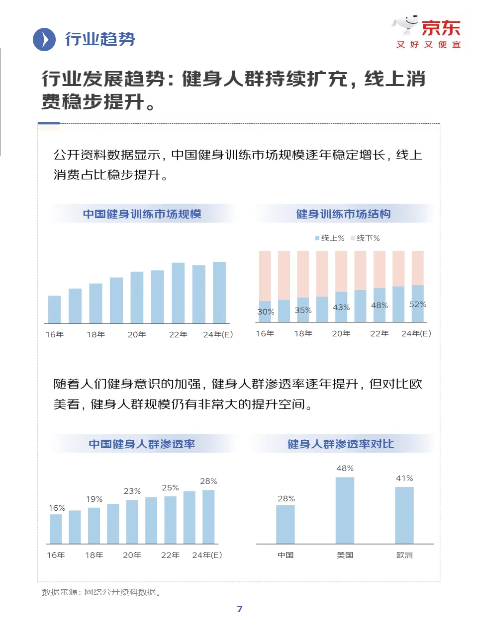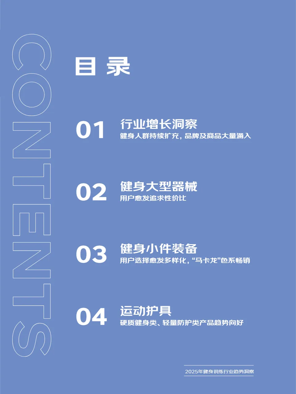 本文件深度剖析了2025年中国健身训练行业趋势,为出海企业提供了从产品开发、选品策略到用户运营的全景式数据支持。文件指出,随着国内健身人群渗透率持续提升、线上消费占比扩大,以及用户对高性价比与智能化产品的偏好增强,跨境卖家应重点关注健身小件装备、硬质护具及新兴大件品类(如爬楼机),并结合“马卡龙色系”、场景化连带销售等趋势优化产品设计与营销话术。