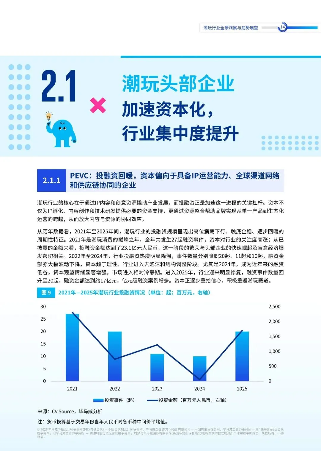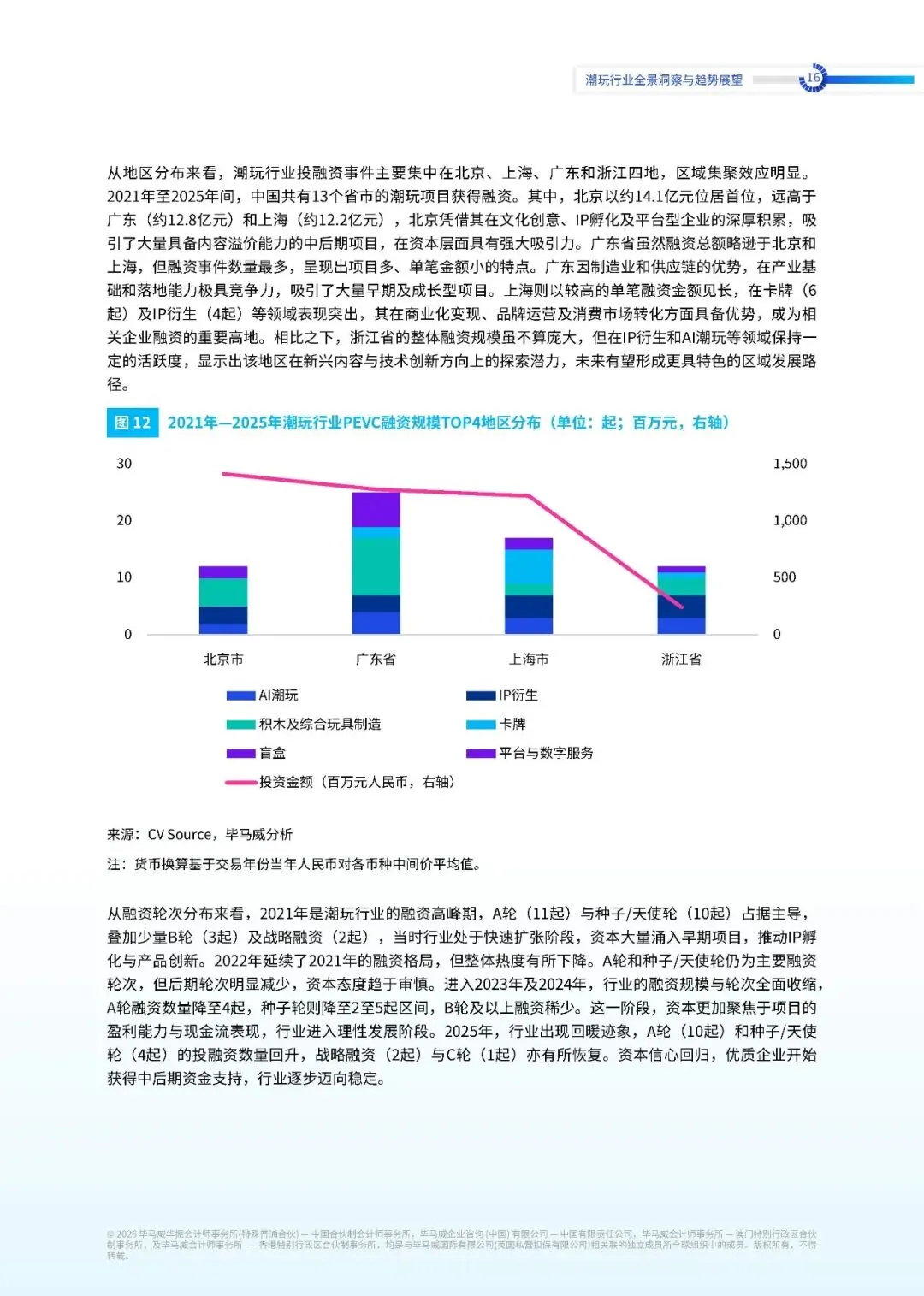 从各细分赛道来看,中国潮玩行业投融资整体呈现由制造与 IP 驱动向技术与内容融合转型的趋势。2021 年,资金主要集中于积木及综合玩具制造、IP 衍生,以及平台与数字服务中。这一阶段正值盲盒经济兴起和渠道快速扩张时期,行业增长更多依赖于产品的供应能力和 IP 的商业化变现能力。进入 2022 年至 2023 年,行业整体融资规模收缩,各赛道的投资热度普遍回落。资本从规模扩张转向对盈利能力的审慎评估,行业进入去泡沫期。