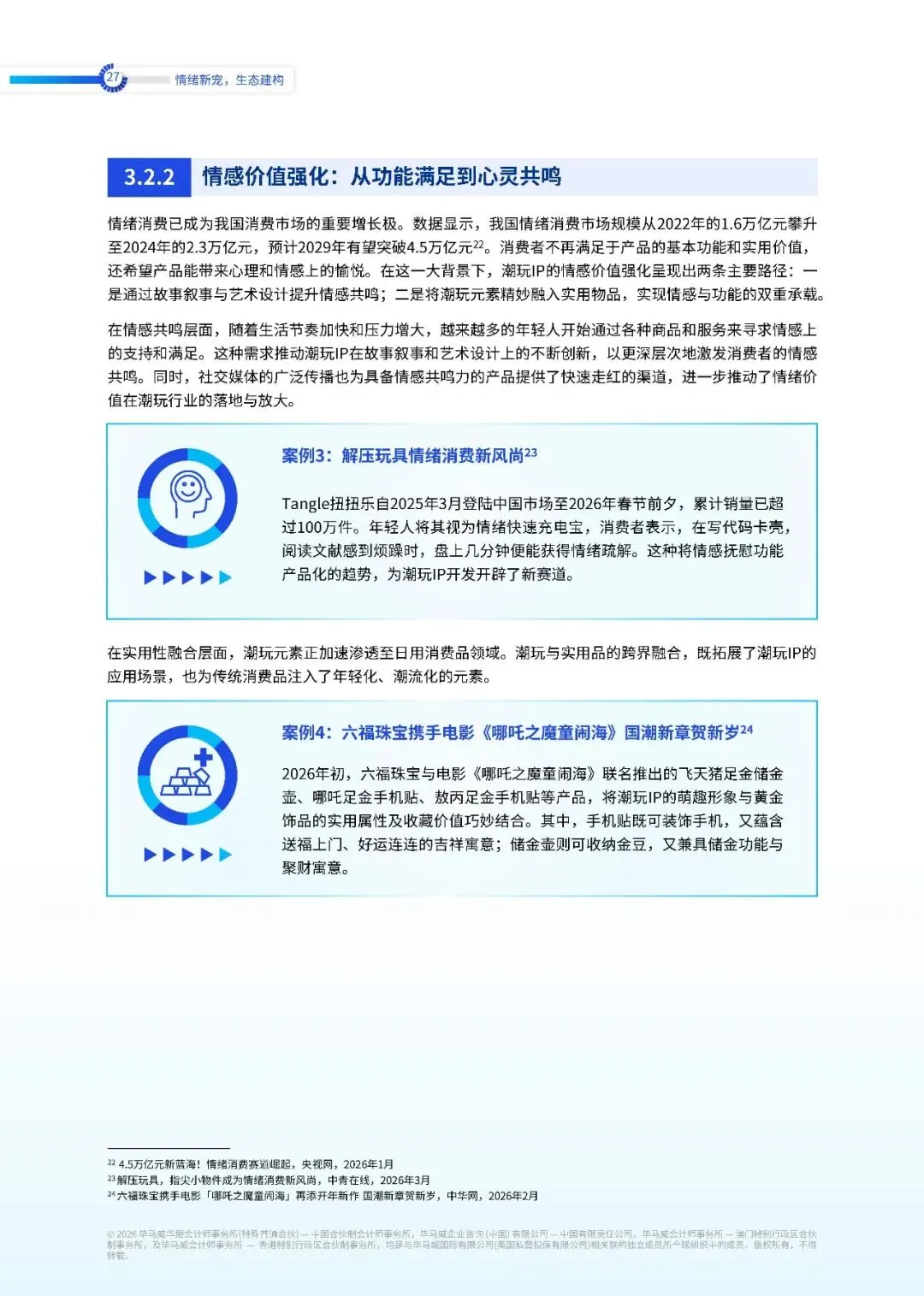 情绪消费已成为我国消费市场的重要增长极。数据显示,我国情绪消费市场规模从 2022 年的 1.6 万亿元攀升至 2024 年的 2.3 万亿元,预计 2029 年有望突破 4.5 万亿元。消费者不再满足于产品的基本功能和实用价值,还希望产品能带来心理和情感上的愉悦。在这一大背景下,潮玩 IP 的情感价值强化呈现出两条主要路径。一是通过故事叙事与艺术设计提升情感共鸣。随着生活节奏加快和压力增大,越来越多的年轻人开始通过各种商品和服务来寻求情感上的支持和满足。