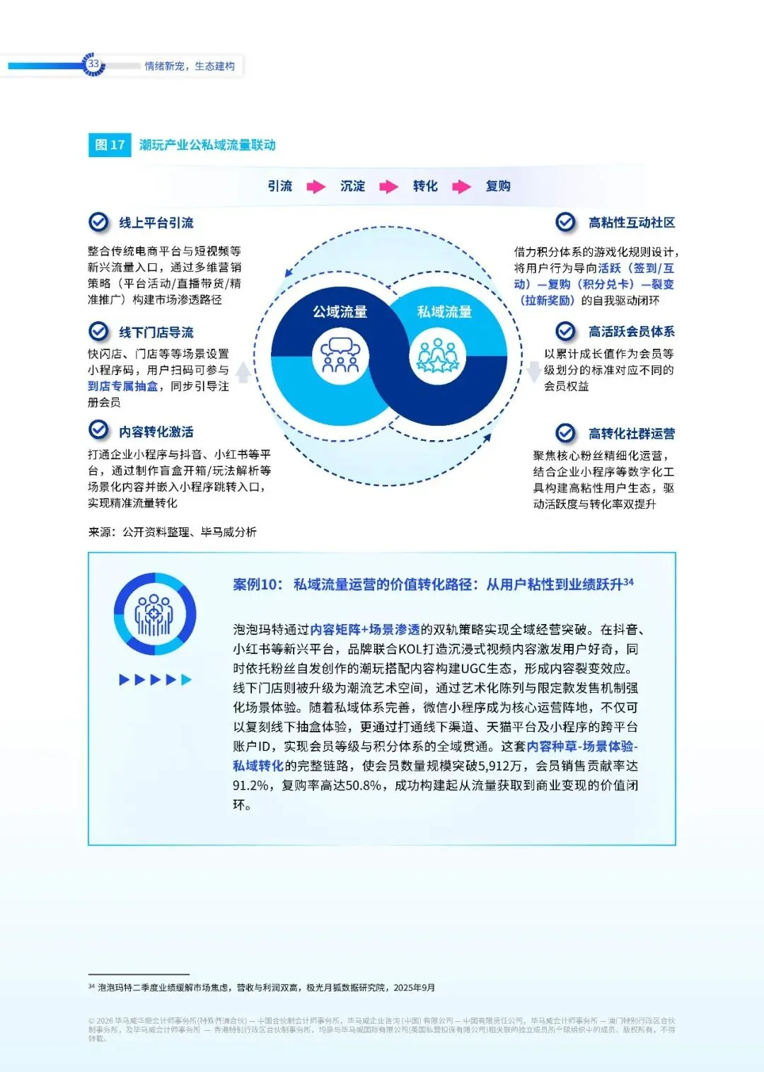 线上社群化运营方面,公私域联动已成为用户增长的加速器。在内容电商蓬勃发展的当下,公域流量与私域运营的协同效应正重塑行业格局。这种联动机制以产品为基础,通过内容传递情绪,引导用户逐步建立情感连接,不仅驱动着潮玩情绪经济的崛起与产业跨界,更成为新消费品类孵化的关键引擎。