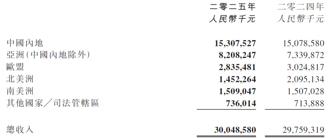 区域市场方面,亚洲(除中国内地)市场收入同比增长11.8%至82.08亿元,成为亮点。然而,受关税政策等地缘因素影响,北美洲市场收入同比下滑31%至14.52亿元,欧盟市场也下滑6.3%。