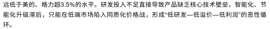 奥克斯电气陷入了“低研发投入—缺乏核心技术壁垒—产品低溢价—低利润—无力加大研发”的恶性循环。