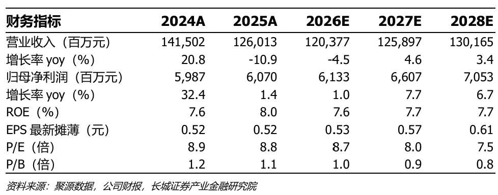 基于上述假设,我们预计2026-2028年公司营业收入分别为1203.77亿元、1258.97亿元、1301.65亿元。