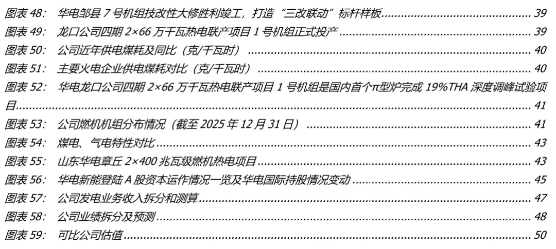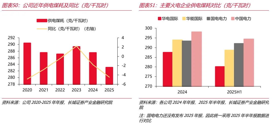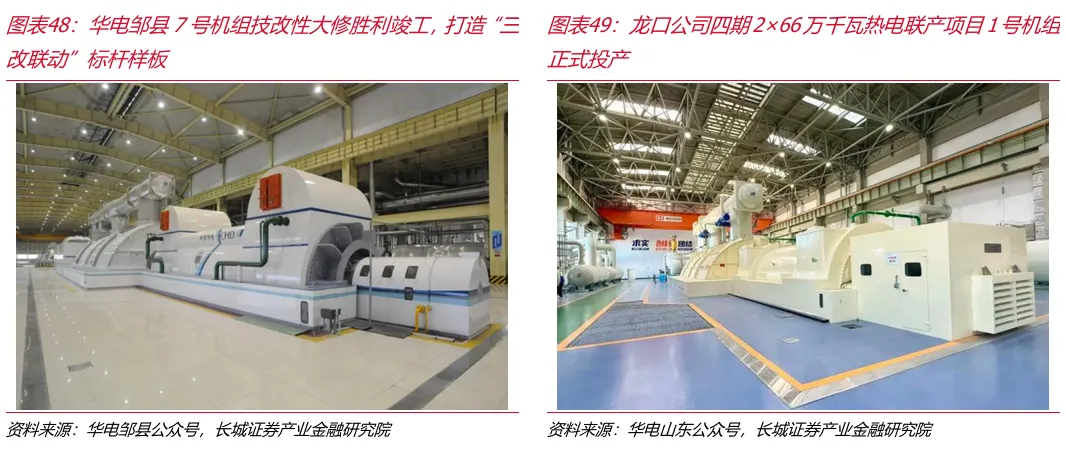 自主新增装机贡献确定业绩,优化资产结构。2025年内,公司依托自身开发体系,已成功实现了多个自主建设电源项目的商业化运营(包括:广东华电惠州能源有限公司的两台53.5万千瓦燃气发电机组、华电江苏能源有限公司子公司上海望亭公司的一台49.46万千瓦燃气发电机组、华电龙口发电有限公司四期2*66万千瓦热电联产项目第二台机组),共计投运222.46万千瓦。且新投产机组资产质量高,技术领先。以投产的华电龙口四期项目为例,投产机组采用超超临界高效热电联产技术,综合能耗达到国内60万千瓦等级热电联产机组优秀水平,有力提高了山东电网稳定性以及当地民生供暖和工业供气保障能力。华电龙口四期项目的全面投运,是公司落实能源安全新战略、助力山东区域经济社会发展的具体行动,是深化改革创新、推动绿色发展取得的重要成果,同时也确保了公司基本盘的持续优化[21]。