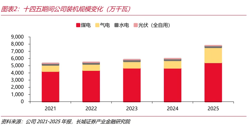 作为中国华电集团唯一的常规能源整合平台,公司历经2025年资产注入后,已构筑起以集团平台为根基、战略区位为屏障、机组效率为核心、新能源轻资产为协同的四重护城河,迈入规模与质量并举的崭新发展阶段。2025年注入的1606万千瓦优质火电资产,叠加公司自主新增装机,截至2025年12月31日公司控股装机规模跃升至7792.43万千瓦量级,此外,更关键的是,资产布局显著优化——燃气机组占比大幅提升、核心负荷区域覆盖更加完善,公司在长三角、粤港澳大湾区等高价值市场的战略卡位进一步巩固,市场竞争力与抗风险能力实现双重跃升。