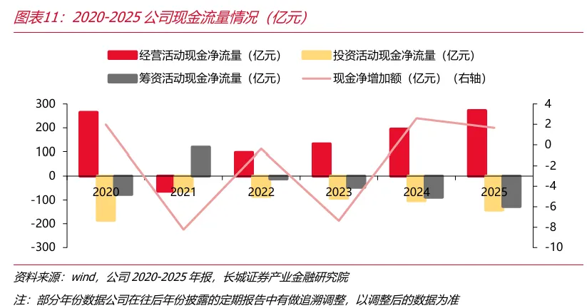 此外,公司持续优化的财务结构与不断提升的股东回报,为长期价值投资提供了坚实支撑。受益于盈利修复,公司经营性现金流持续改善,2025经营活动产生的现金流量净额272.21亿元,同比增长39.9%。在现金流充裕的基础上,公司具备持续提升分红比例的潜力,高股息属性有望吸引更多稳健型资金配置。