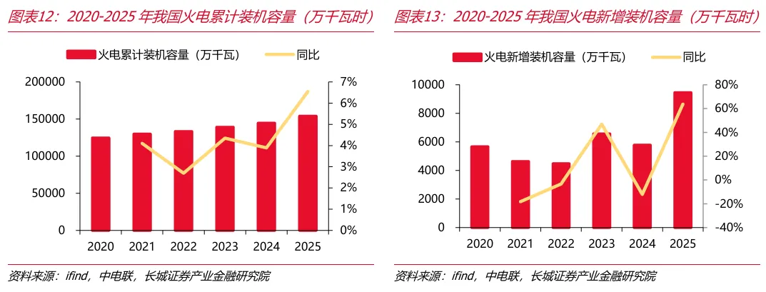 总量稳步扩张,应急保供驱动新增装机波动。“十四五”期间火电装机的增长,是一次在能源安全紧迫性驱动下的“理性回归”。2021-2022年全国多地出现的有序用电现象,以最直接的方式警示了电力系统在新能源占比快速提升过程中可靠容量的短缺。这促使政策层面重新评估火电的“压舱石”作用,此前一度放缓的煤电审批与建设节奏得以显著加快。截至2025年12月31日,全国火电装机容量突破15.39亿千瓦,较“十三五”末(2020年底)净增约2.93亿千瓦。然而,这一轮装机增长的内核与历史上任何时期都不同。其核心驱动力已从满足持续增长的用电负荷,转向应对极端天气、新能源大发波动、以及季节性、时段性电力短缺的安全保障需求。新增装机的规划选址、技术选型均围绕这一新逻辑展开:更多布局在电力输入省份和负荷中心周边,以加强区域自保能力;大力推广60万千瓦及以上超超临界机组,并强调具备深度调峰至30%额定容量甚至更低的技术能力[9]。展望“十五五”,我们认为,火电装机仍将保持一定增长,但将彻底告别粗放式扩张。增长将高度聚焦于两大方向:一是为支撑大型新能源基地外送而配套的“支撑性”调节煤电;二是在负荷中心建设的“保障性”热电联产及调峰机组。“不可或缺的备用容量”而非“主力发电电源”,已成为定义火电装机增长的新范式。