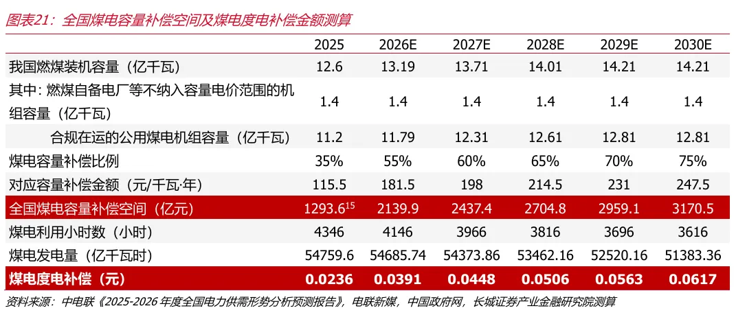 [15] 假设依据:2024-2025年各省2026年煤电容量补偿比例大部分为30%,少部分高达50%,因此我们假设平均水平为35%