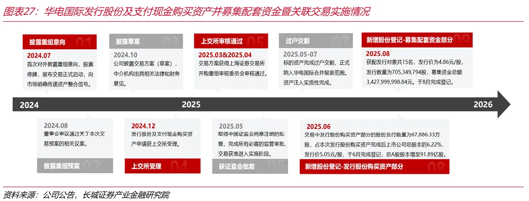 2025年公司以约72亿元对价收购集团旗下16GW优质火电资产,是平台价值兑现的标志性事件。2025年,公司通过“发行股份及支付现金相结合”的方式,以总计约71.67亿元的对价,完成了对中国华电集团旗下8家优质发电公司股权的收购,对应权益装机容量约1,606万千瓦。具体而言,公司向控股股东中国华电集团有限公司发行股份,收购其持有的江苏公司80%股权;同时,以现金方式分别向华电福瑞能源投资有限公司收购上海福新51%股权、上海闵行100%股权、广州大学城55.0007%股权、福新广州55%股权、福新江门70%股权、福新清远100%股权,以及向华电北京收购贵港公司100%股权。为支付现金对价及支持后续项目,公司还同步向15名特定投资者非公开发行股份,成功募集配套资金34.28亿元。本次交易中,用于购买资产的股份发行数量为67,886.33万股,占交易完成后总股本的约6.22%;包含配套融资在内的总发行数量为70,534.98万股。全部标的资产已于2025年7月完成交割并表,相关新增股份也于同年6月及8月分别完成股份登记,标志着此次规模与战略意义并重的资本运作圆满落地。