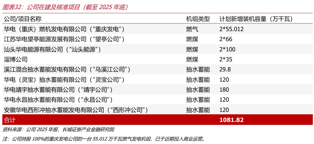 在建与核准项目储备丰厚,奠定中长期成长基础。根据公司2025年报披露,公司在建与已核准待建项目共计1081.824万千瓦,为“十五五”期间的持续增长储备了充足动能。其中,火电方面,公司坚持“先立后破”原则,统筹优质项目落地和在建工程跟踪督导,全面推动煤电高质量发展。清洁能源方面,公司亦在建设以及拟建一批抽水蓄能项目,抽蓄项目虽前期资本开支大、建设周期长,但运营期长、边际成本低、现金流稳定,其作为优质的调节性资产能够显著优化公司长期资产结构,提升整体抗风险能力和估值水平。