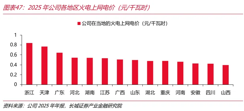 通过近年来的资产注入与重点发展,截至2025年底,公司燃气发电控股装机已达2107.27万千瓦,规模跃居行业前列。这些燃气机组具有启停迅速、负荷调节灵活、碳排放强度较低的突出特点,契合新型电力系统对灵活调峰资源的迫切需求。并且公司燃气机组主要集中布局于长三角、粤港澳大湾区等全国核心电力负荷中心,这些区域电力需求旺盛、电价承受能力强,使得公司燃气发电业务兼具稳定的盈利能力和保障电网安全的战略价值。