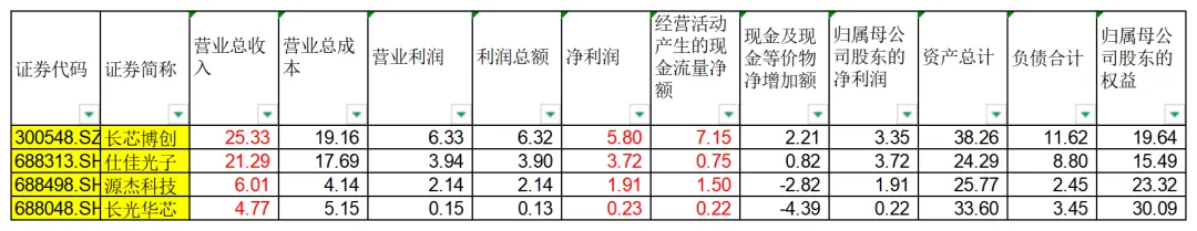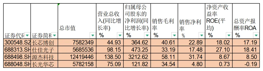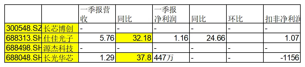1 长光华芯、仕佳光子、长芯博创、源杰科技