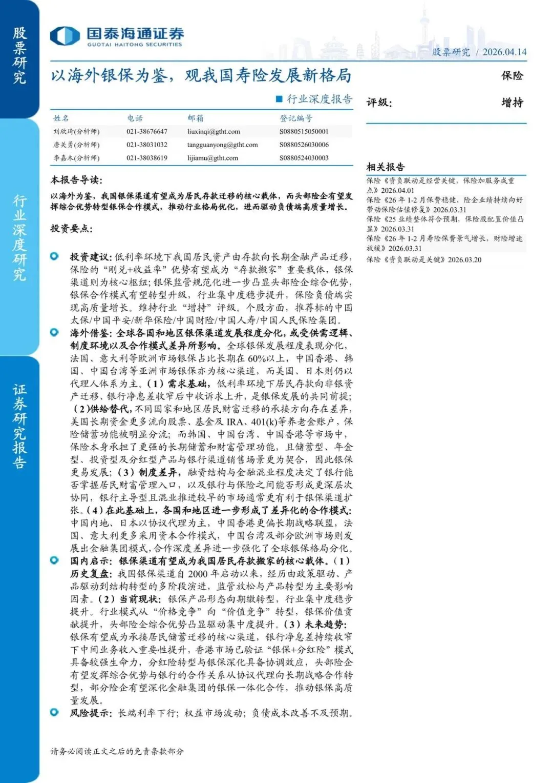 回复暗号:保险行业深度报告:以海外银保为鉴,观我国寿险发展新格局-260414-国泰海通证券-26页