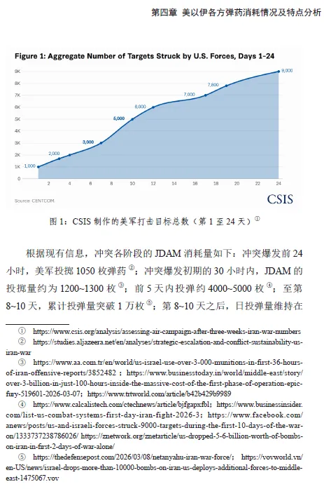 第四章聚焦弹药消耗。通过统计冲突爆发30天以来各方的关键弹药消耗数据,从实战视角深度剖析了美军当下作战能力的重要支柱。文章摒弃了单纯的成本核算与数据罗列,而是通过实弹消耗表现,反向推导美军在实战环境下的机队规模、防空反导体系及弹药储备的真实运作状态。