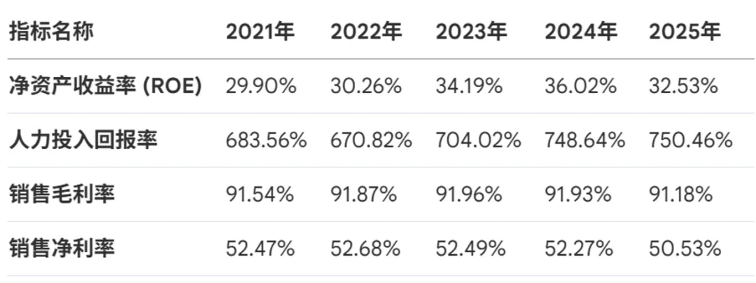 2025年,毛利率和净利率分别为91.18%、50.53%,同比分别下降0.82%、3.34%,业绩指标出现小幅下滑。