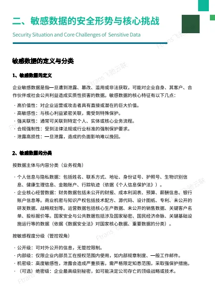 白皮书由飞驰云联发布,聚焦企业敏感数据全生命周期安全管理,系统分析当前数据安全形势、核心痛点,搭建完整管控体系,详解关键技术与落地解决方案,并结合多行业实践验证应用价值,为企业数据安全建设提供体系化指引。