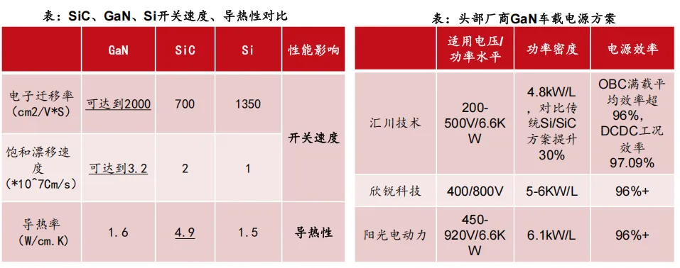 相比Si材料,GAN支持更高开关频率,提高车载电源效率和功率密度。