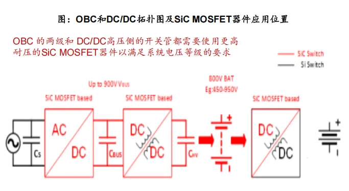 • 从下游需求来看, 目前新能源汽车往低成本、小尺寸、轻量化以及高性能发展,对应的车载电源系统整体方向向集成化、高压化发展,推动部件在功率密度、耐压性和效率方面提升。