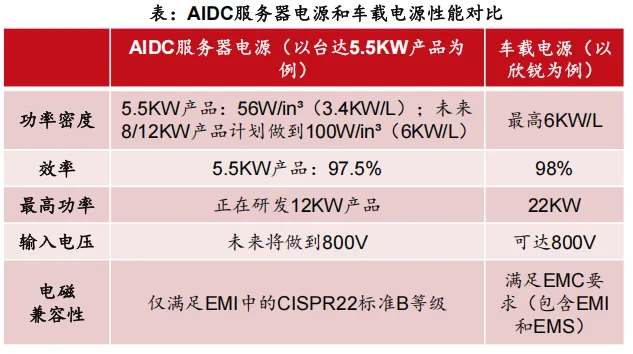 车载电源架构、技术路线与AIDC电源相似,车载电源厂商有望降维拓展AIDC服务器电源。