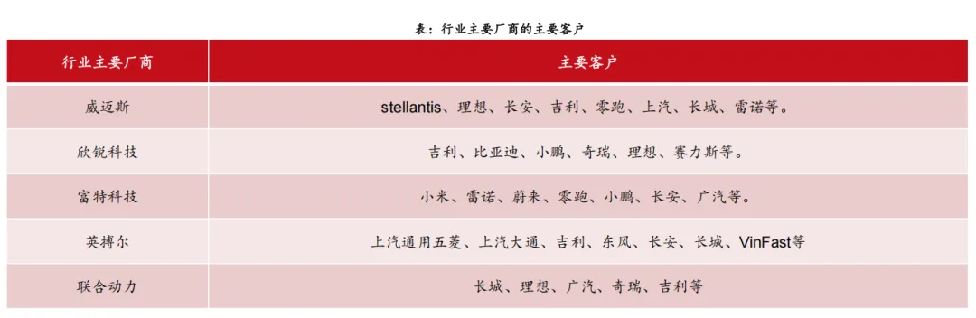 由于车载电源产品往往需要根据客户车型进行合作开发,开发周期长、认证难度大。因此,车载电源系统产品一经通过整车厂的产品认证,就会与相应的整车车型形成稳定的配套关系,形成产品定制化壁垒。此外, 头部厂商与整车厂有战略合作关系,和重点客户绑定较深。