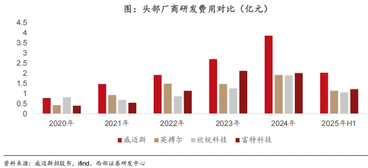 此外,威迈斯在费用控制方面的表现相比其他厂商来说较好,销售费用率连年下降,管理费用率维持在2%-3%之间。