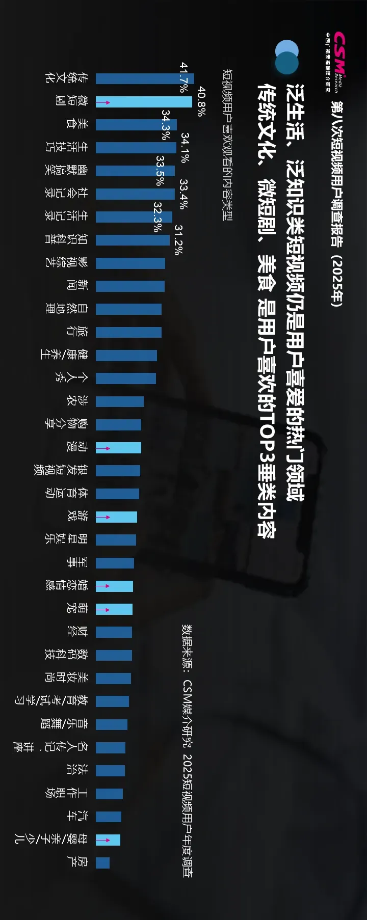 传统文化、微短剧、美食是用户喜欢的TOP3垂类内容