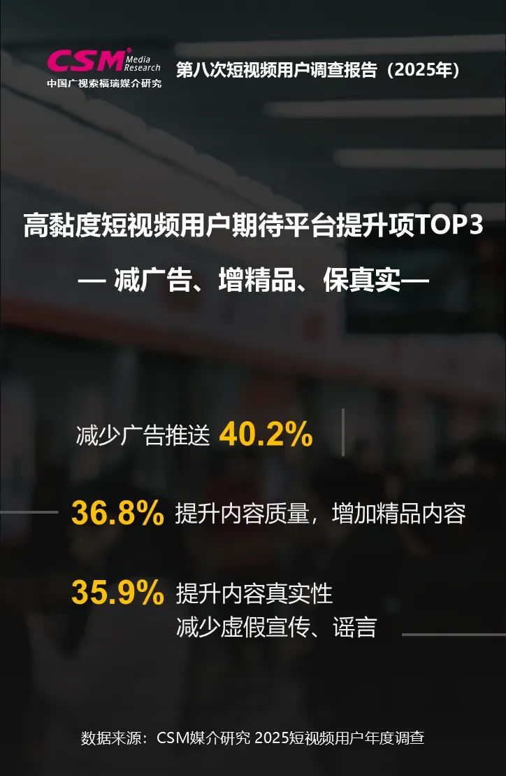 用户期待平台提升项TOP3:减广告、增精品、保真实