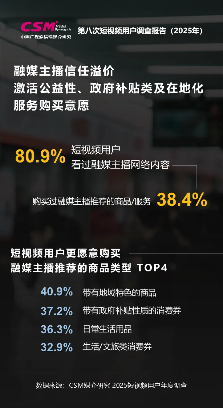 融媒主播信任溢价,激活公益性、政府补贴类及在地化服务购买意愿