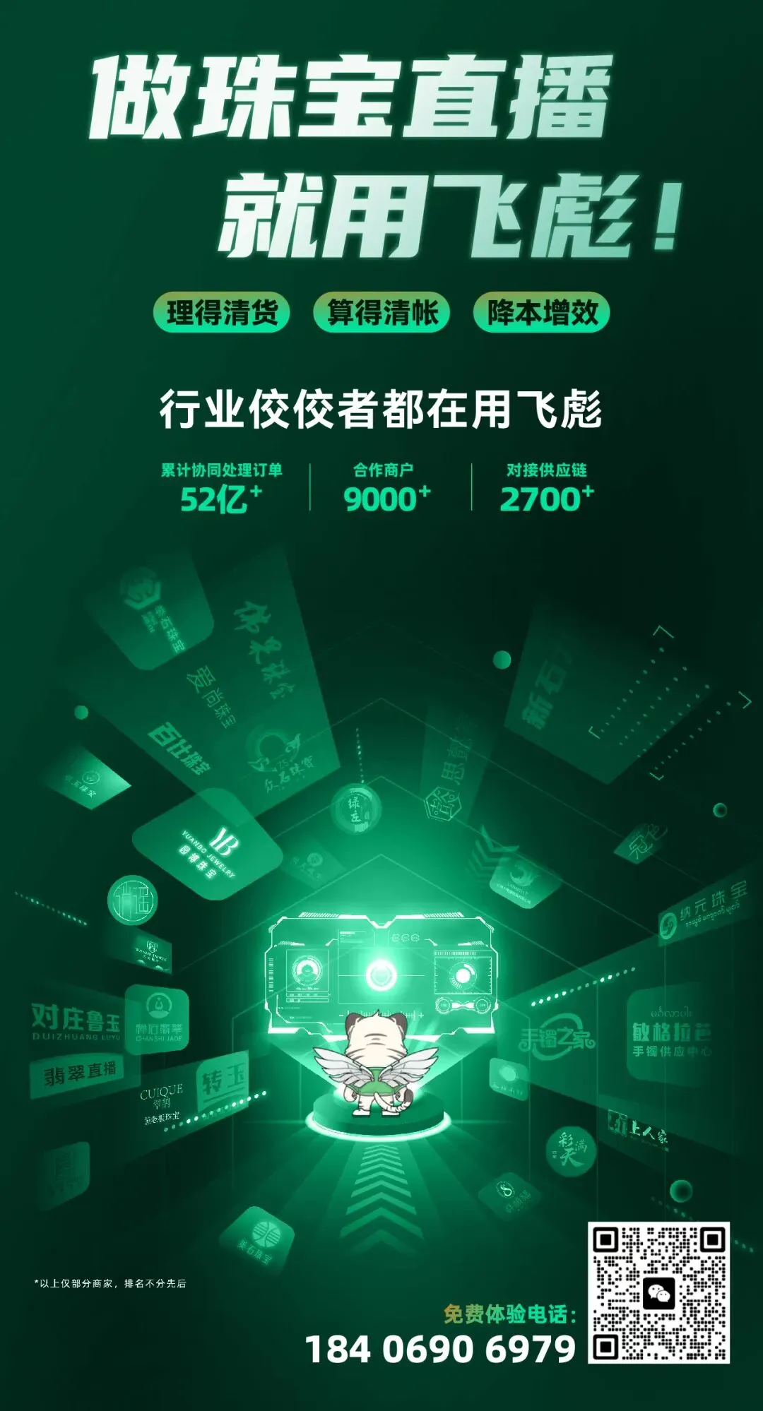和田玉头部品牌从看料、直播到售后全链自营把控,靠高效管理拼复购、降成本、提签收率,越来越多老板都选择用飞彪系统来管生意。
