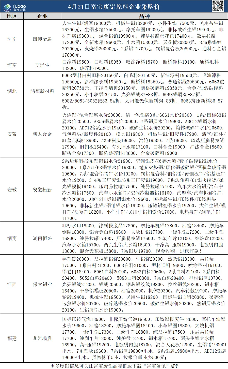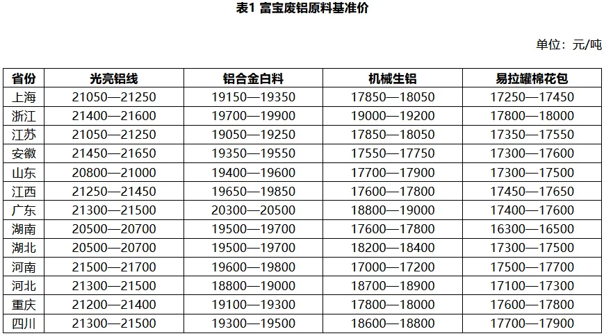 今各地区废铝价格稳中小跌,华东地区光亮铝线20500-21650元/吨,铝合金料18700-19800元/吨;下游订单不佳,再生铝合金企业采购价跟跌明显,生铝价格表现不如熟铝;持货商多以出货为主,市场流通货源尚可,短期铝价回落,料废铝价跟跌。