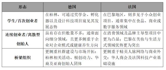 在这些生态体系中,中国的创业活动虽已存在,但尚未形成完善的制度体系。最有力的证据指向三条路径:其一,学生及首次创业者在柏林或巴黎地区开展小众创业项目;其二,连续创业者或海外华人创业者以欧洲为基地,打造细分品类品牌或企业对企业创业项目;其三,桥梁机构与跨境项目将本地创业生态与中国资本、人才或市场准入相关合作对接起来[12]-[15]。