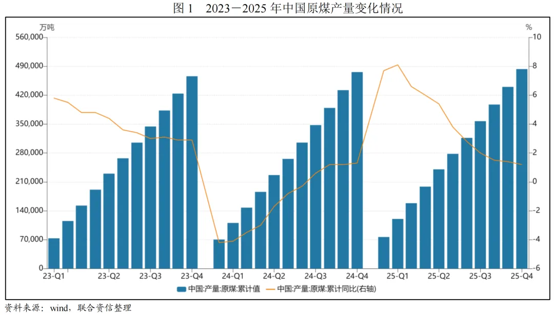 煤炭是中国重要的基础能源,在国民经济中具有重要的战略地位。2025年,全国煤炭产量略有增长,煤炭进口量有所下降;下游火电行业对煤炭消费需求稳健,但钢铁及建材行业需求支撑不足,煤炭价格震荡回落,行业整体盈利水平有所下降。