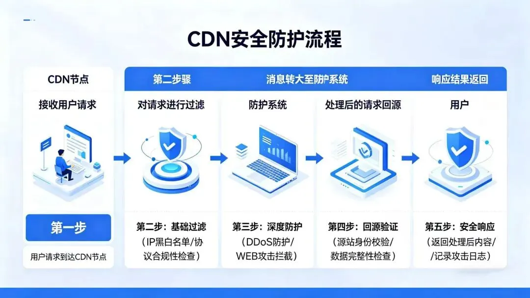 - CDN节点天然成为安全第一道防线,攻击在边缘清洗