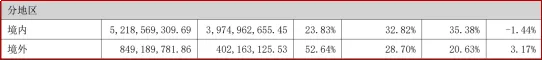 公司整体毛利率27.86%,同比下降0.89个百分点。分地区来看,境内业务毛利率23.83%,境外业务毛利率52.64%,远超境内业务水平。