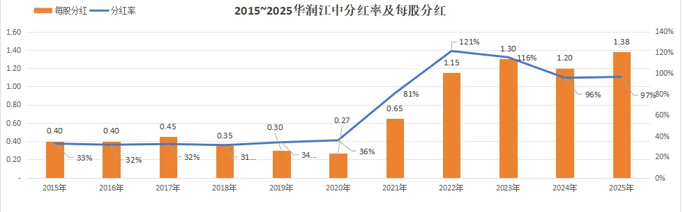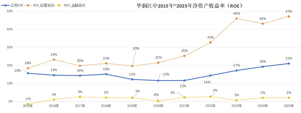 江中过去10年的表现,净资产收益率走势非常稳健,2018年前常年稳定在15%以上,疫情三年期间回落,2022年回升到14%,并在2025年进一步提升到21%。