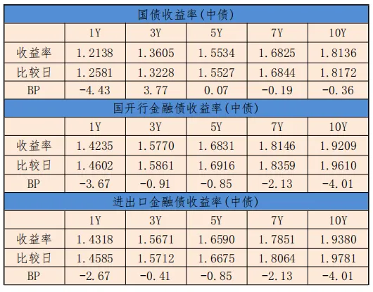 中债进出口金融债曲线整体下行,10年期带动曲线对应期限下行4.01BP,至1.9380%。