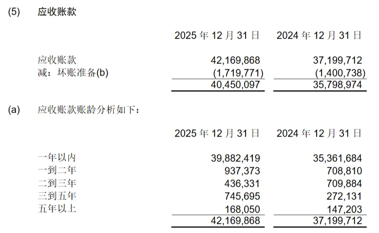 应收账款421.70亿元,同比增加12.99%;Q4-60.22亿元,同比下降435.11%。其中增加的主要是一年以内的应收账款,2年以上增加的绝对额不算是很多,这个风险还算是可控。