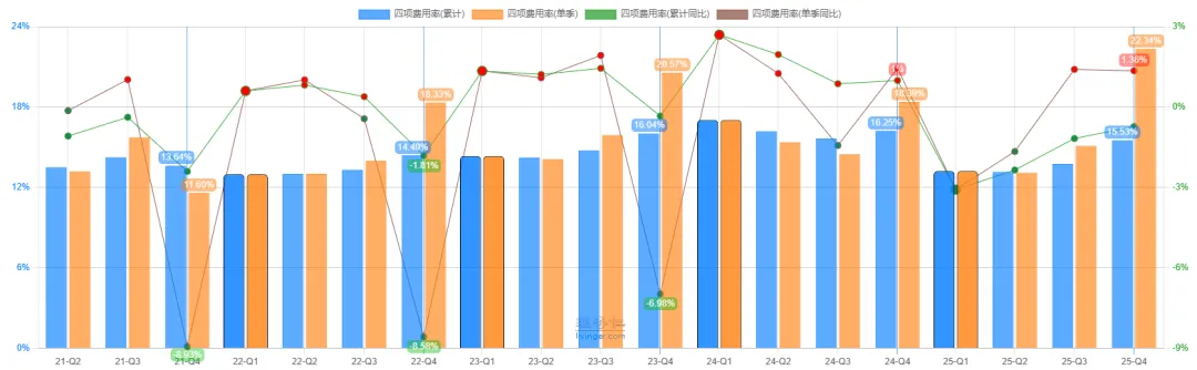 四项费用率15.53%,同比下降0.72pct;Q4四项费用率22.34%,同比提升1.36pct。费用率控制得还可以 前两年费用率提升之后又开始下降了。