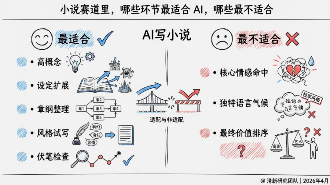 小说领域的最终判断:AI改造的是前端探索、试错效率与IP组织方式,而不是直接生产伟大文学。