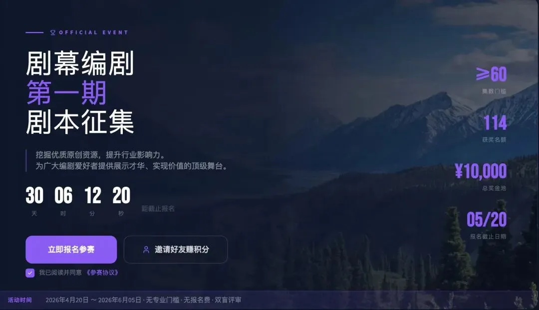 此外,编剧朋友们看过来,智灵剧幕编剧第一期AI剧本征集大赛,总奖池10000元,等你来拿!
