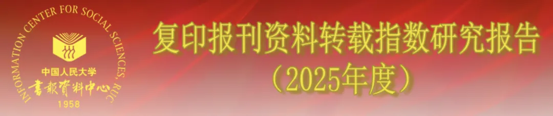 2025年度,本学科被复印报刊资料学术刊全文转载的期刊有196种,转载全文总量为801篇,约占全年复印报刊资料学术刊全文转载总量(11136篇)的7.2%。其中,进入转载量表的期刊有30种,共被转载436篇,约占本学科全年转载总量的54.4%,平均转载量为14.5篇。