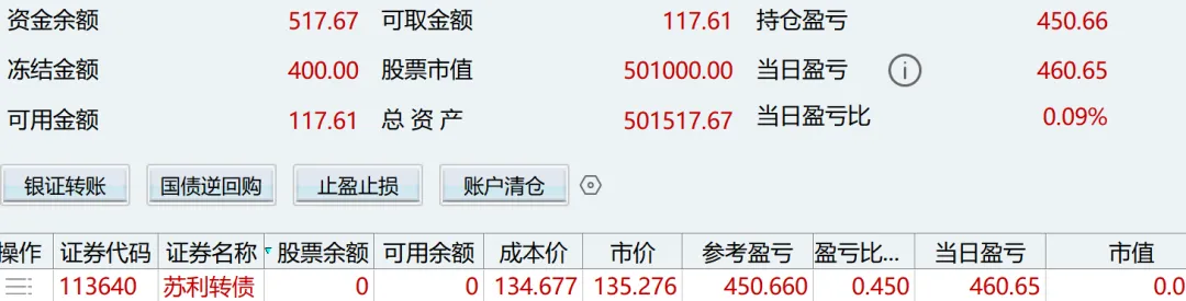 早上抄底一点强赎线的苏利。转债市场今天比较差,尾盘没拉回来。