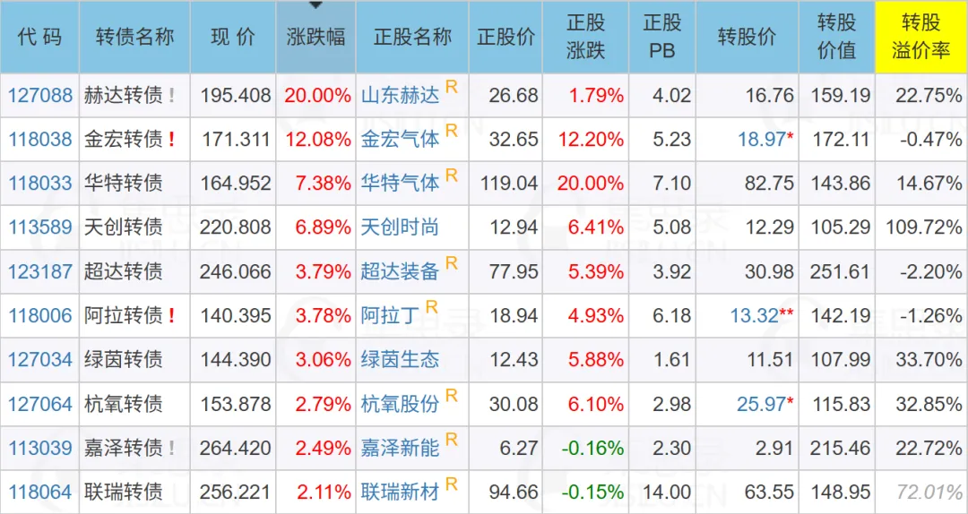 金宏、华特、杭氧转债,电子特气 芯片相关。